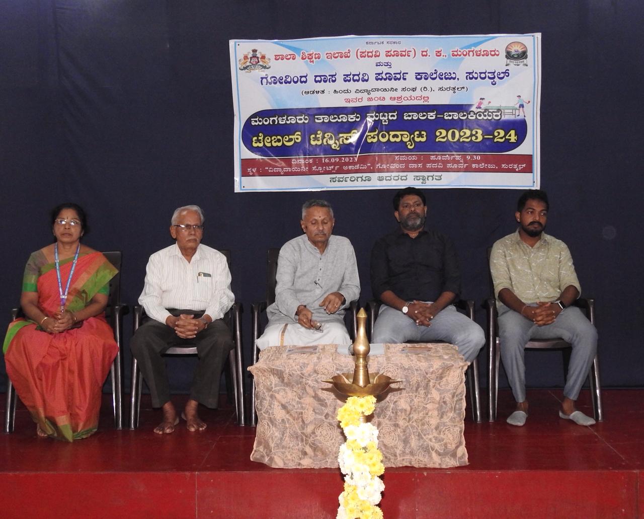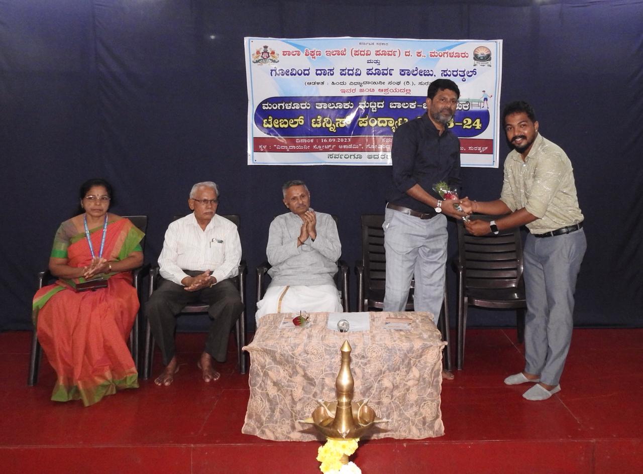 Mangaluru Taluk level table tennis tournament for boys and girls was organised at Vidyadayinee Sports academy of our college in association with school education department (pre-university) on 16th September 2023.The tournament was inaugurated by Sri Gautham shetty President of Torpedos Sports Club, Sri Jayachandra Hathwar H.,Sri Shreeranga H., Sri M.G. Ramachandra and Prof. Y.V. Rathnakar Rao were the guests of honour.