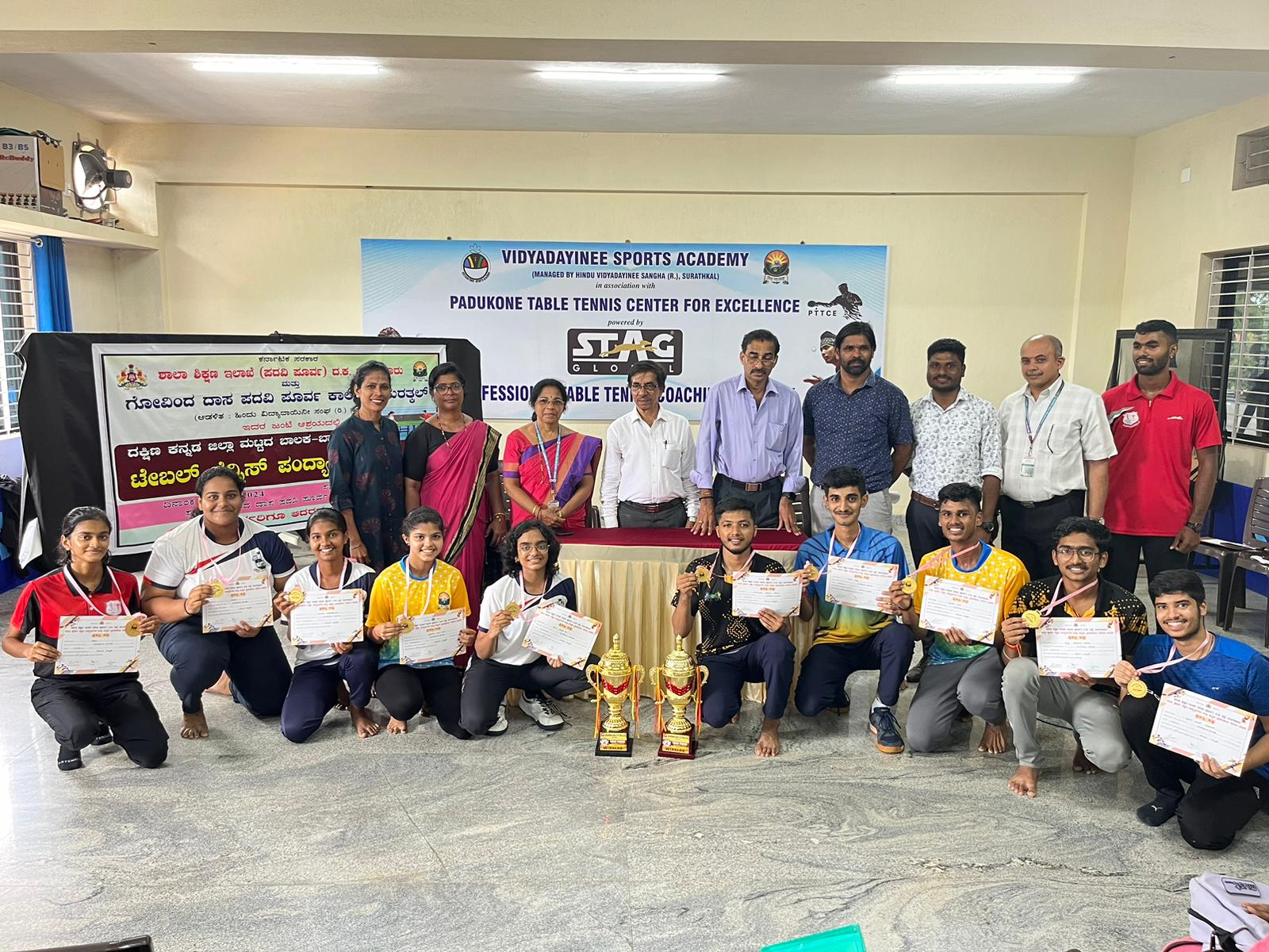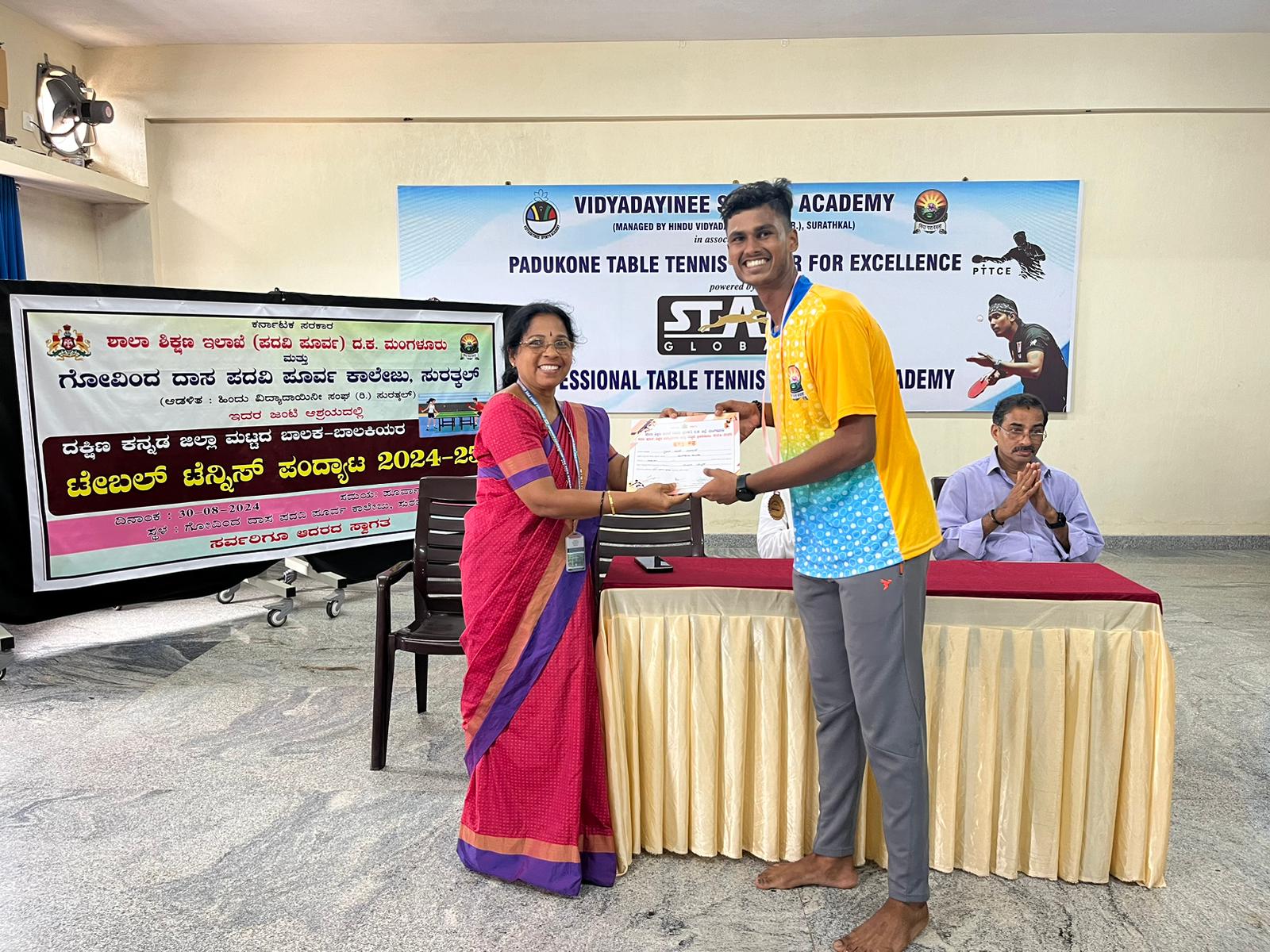In collaboration with School education department (Pre-University) D.K.,Mangaluru and Govinda Dasa Pre-University College surathkal, organized Mangaluru District Level table tennis tournament on 30th August 2024, in our college auditorium in which P.S. Venkatesh, Main referee, Karnataka Bodybuilding Association was the inaugurator. It was followed by valedictory programme at vidyadayinee sports academy, surathkal. Our proud students Mr.Pratheek N. and Ms.Vaishnavi Rao QUALIFIED TO REPRESENT DAKSHINA KANNADA DISTRICT IN STATE LEVEL TABLE TENNIS TOURNAMENT.